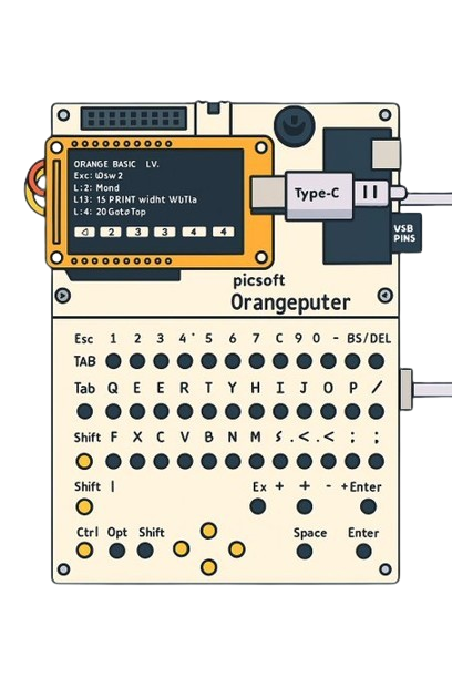 | Orangeputerとは? Orange-rogue計画が再出発します。 Orangeputerは計算機科学の教材で、ポケコン素材でもあります。 ポケコンでプログラムを作るのではなく、「自分でコンピューターを設計できるようになること」を目的としています。OS(Orange-Rogue Operating System)や言語プロセッサー(BASICインタプリター、Cコンパイラー他)をフルスクラッチで開発します。 |